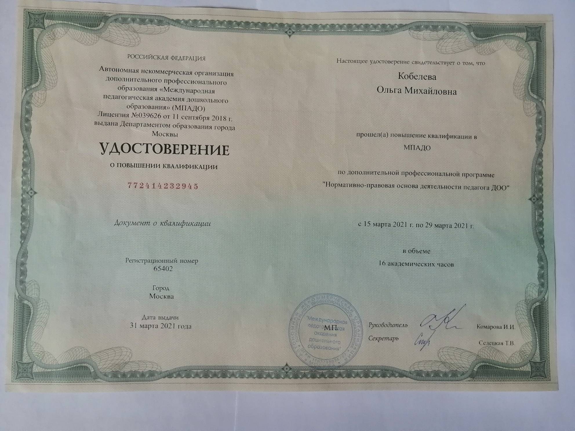 Документ утвержден:29 марта 2021